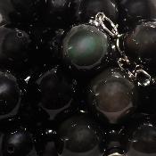 Irisée de zones violacées, concentriques. Comme l'obsidienne noire, mais à un degré supérieur, elle nous protège efficacement, grande pierre de protection, placer dans une pièce près de soi, et associer à d'autres pierres de protections (Spinelle, Oeil de Tigre, Tourmaline Noire) lorsqu'on la porte sur soi. Cette puissante pierre de protection nous connecte aussi à notre inconscient, elle permet de l'apercevoir, de le ressentir et surtout fait circuler ces émotions que nous n'arrivons pas à changer. Certaines personnes la trouvent trop forte dans son travail de dégagement des émotions, d'autres personnes l'adorent et trouvent qu'elle ouvre des portes dans leur vie. Penser à toujours bien la purifier après usage. Taillée en boule et associée à une pointe en cristal de roche, elle transmute en lumière toutes le énergies négatives, elle évacue toutes les "entités", en alignant et en purifiant tous les chakras. Pierre de grandes possibilités, elle doit être utilisée avec respect. On lui attribue le pouvoir de repousser les attaques psychiques et occultes.