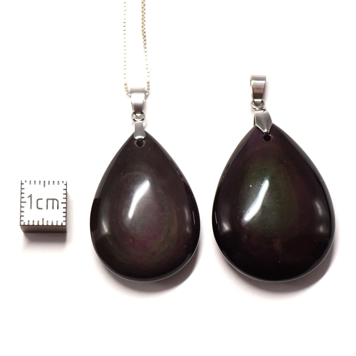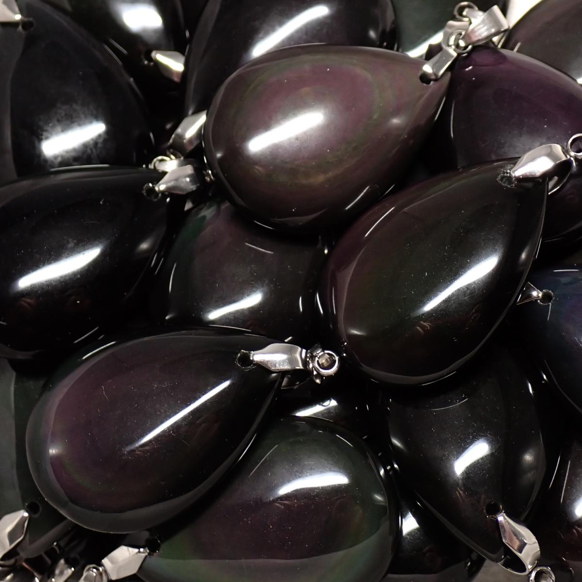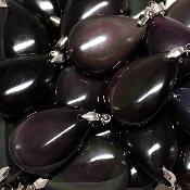 Irisée de zones violacées, concentriques. Comme l'obsidienne noire, mais à un degré supérieur, elle nous protège efficacement, grande pierre de protection, placer dans une pièce près de soi, et associer à d'autres pierres de protections (Spinelle, Oeil de Tigre, Tourmaline Noire) lorsqu'on la porte sur soi. Cette puissante pierre de protection nous connecte aussi à notre inconscient, elle permet de l'apercevoir, de le ressentir et surtout fait circuler ces émotions que nous n'arrivons pas à changer. Certaines personnes la trouvent trop forte dans son travail de dégagement des émotions, d'autres personnes l'adorent et trouvent qu'elle ouvre des portes dans leur vie. Penser à toujours bien la purifier après usage. Taillée en boule et associée à une pointe en cristal de roche, elle transmute en lumière toutes le énergies négatives, elle évacue toutes les "entités", en alignant et en purifiant tous les chakras. Pierre de grandes possibilités, elle doit être utilisée avec respect. On lui attribue le pouvoir de repousser les attaques psychiques et occultes.