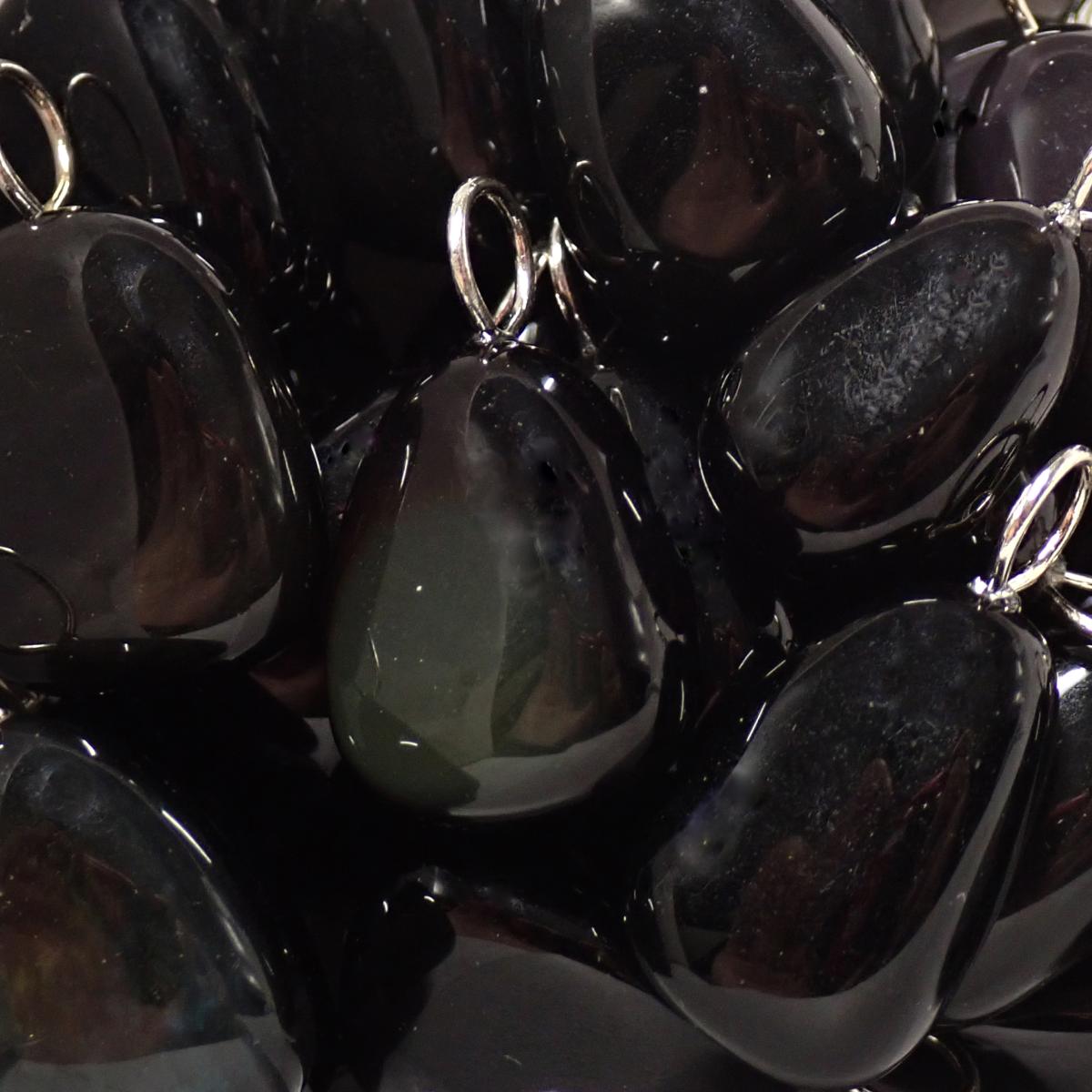 • Obsidienne Oeil Celeste - Pendentif pierre roulée (Lot de 10 pièces)