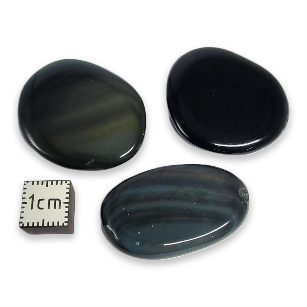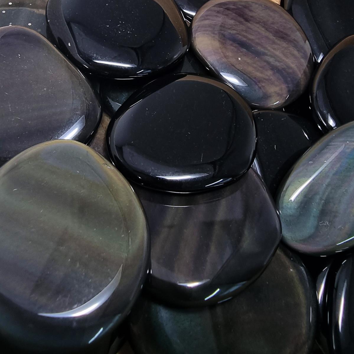 Irisée de zones violacées, concentriques. Comme l'obsidienne noire, mais à un degré supérieur, elle nous protège efficacement, grande pierre de protection, placer dans une pièce près de soi, et associer à d'autres pierres de protections (Spinelle, Oeil de Tigre, Tourmaline Noire) lorsqu'on la porte sur soi. Cette puissante pierre de protection nous connecte aussi à notre inconscient, elle permet de l'apercevoir, de le ressentir et surtout fait circuler ces émotions que nous n'arrivons pas à changer. Certaines personnes la trouvent trop forte dans son travail de dégagement des émotions, d'autres personnes l'adorent et trouvent qu'elle ouvre des portes dans leur vie. Penser à toujours bien la purifier après usage. Taillée en boule et associée à une pointe en cristal de roche, elle transmute en lumière toutes le énergies négatives, elle évacue toutes les "entités", en alignant et en purifiant tous les chakras. Pierre de grandes possibilités, elle doit être utilisée avec respect. On lui attribue le pouvoir de repousser les attaques psychiques et occultes.