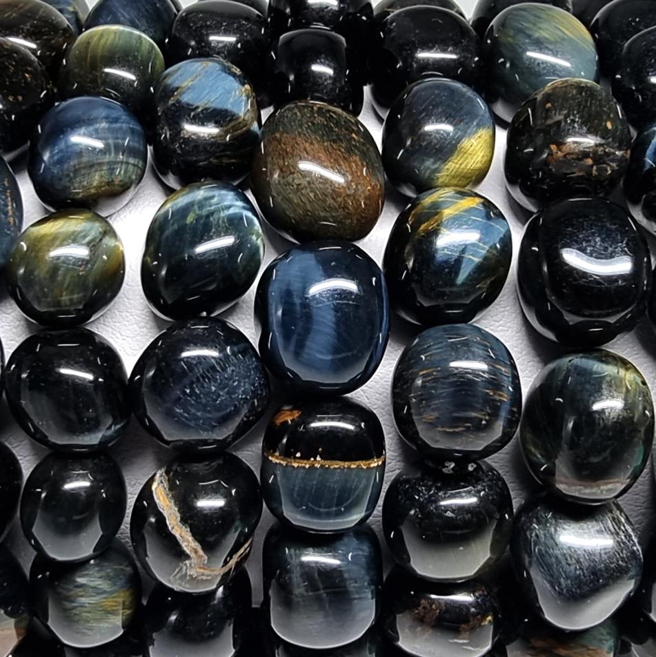 Cette pierre est le produit d'une altération pseudo morphique sur une variété bleue d'asbeste (amiante) : la structure originelle est restée inchangée mais, avec le temps, les molécules d'amiante ont été partiellement remplacées par du quartz (Si O2). La luminosité chatoyante de ce minéral est due à la réflexion de la lumière sur sa structure fibreuse. Pierre stimulante de nos facultés nerveuses parapsychologiques, elle booste les dons des femmes et des hommes, elle est aussi active sur les chakras 5 gorge et 6 sur le front ou les yeux.