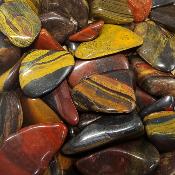 Aussi appelé "œil de fer". Association du jaspe, nous trouvons ici toutes les formes d'oxydation du fer : limonite, magnétite, hématite. Ce jaspe souvent rouge et contient des veines grises métalliques (le fer) apporte la force du fer dans le sang, il donne donc du courage, de l'action, du dynamisme.