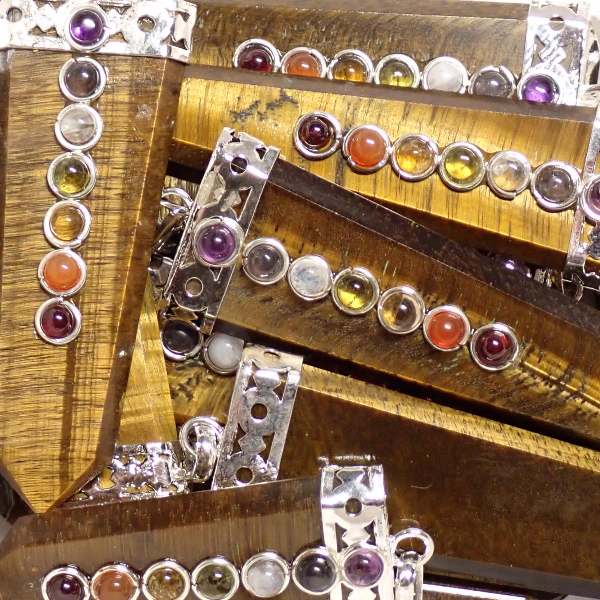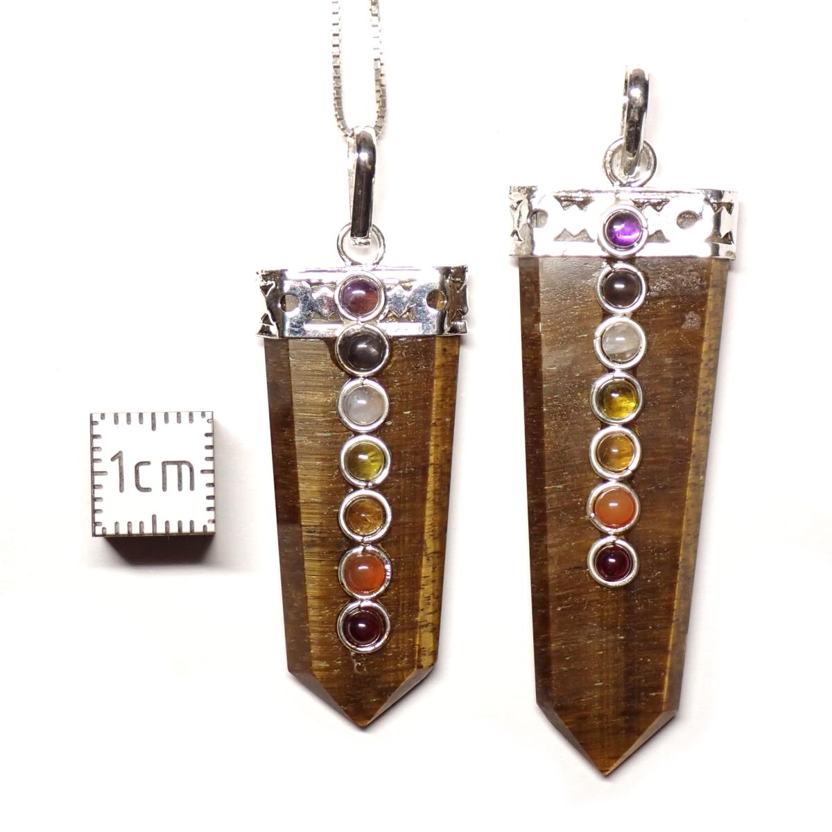 Oeil de Tigre Pendentif pointe 7 chakras par 3 pièces