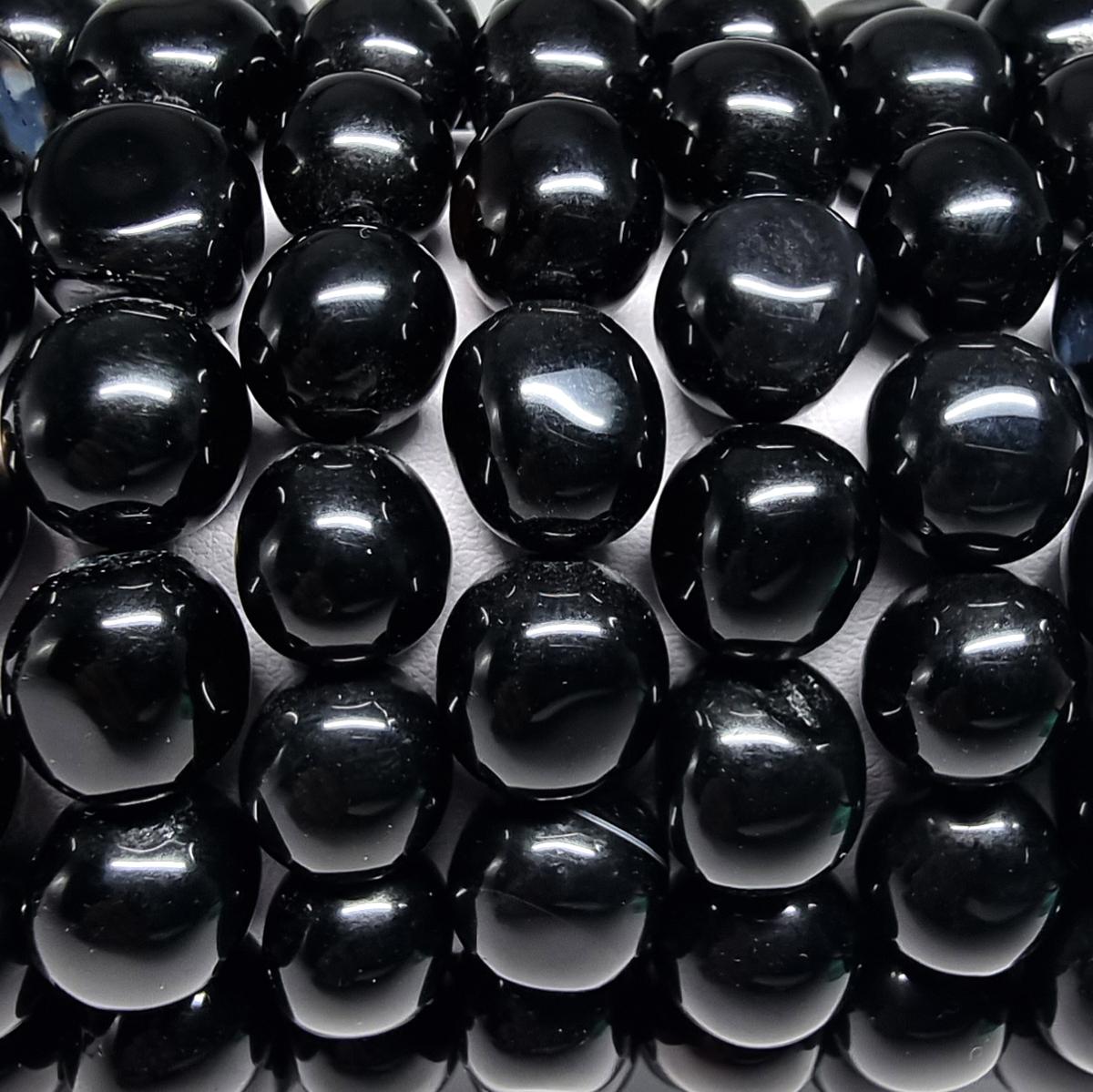 L'onyx est une variété de calcédoine (groupe du quartz, Si O2) à bandes parallèles rectilignes, noires et blanches. C'est la partie noire que l'on appelle communément onyx noir.  Pierre d'enracinement à la Terre. Elle nous donne une grande stabilité. Traditionnellement, l'onyx noir est une pierre de protection contre les énergies négatives.