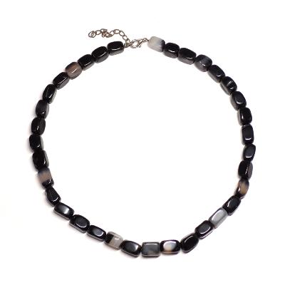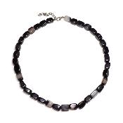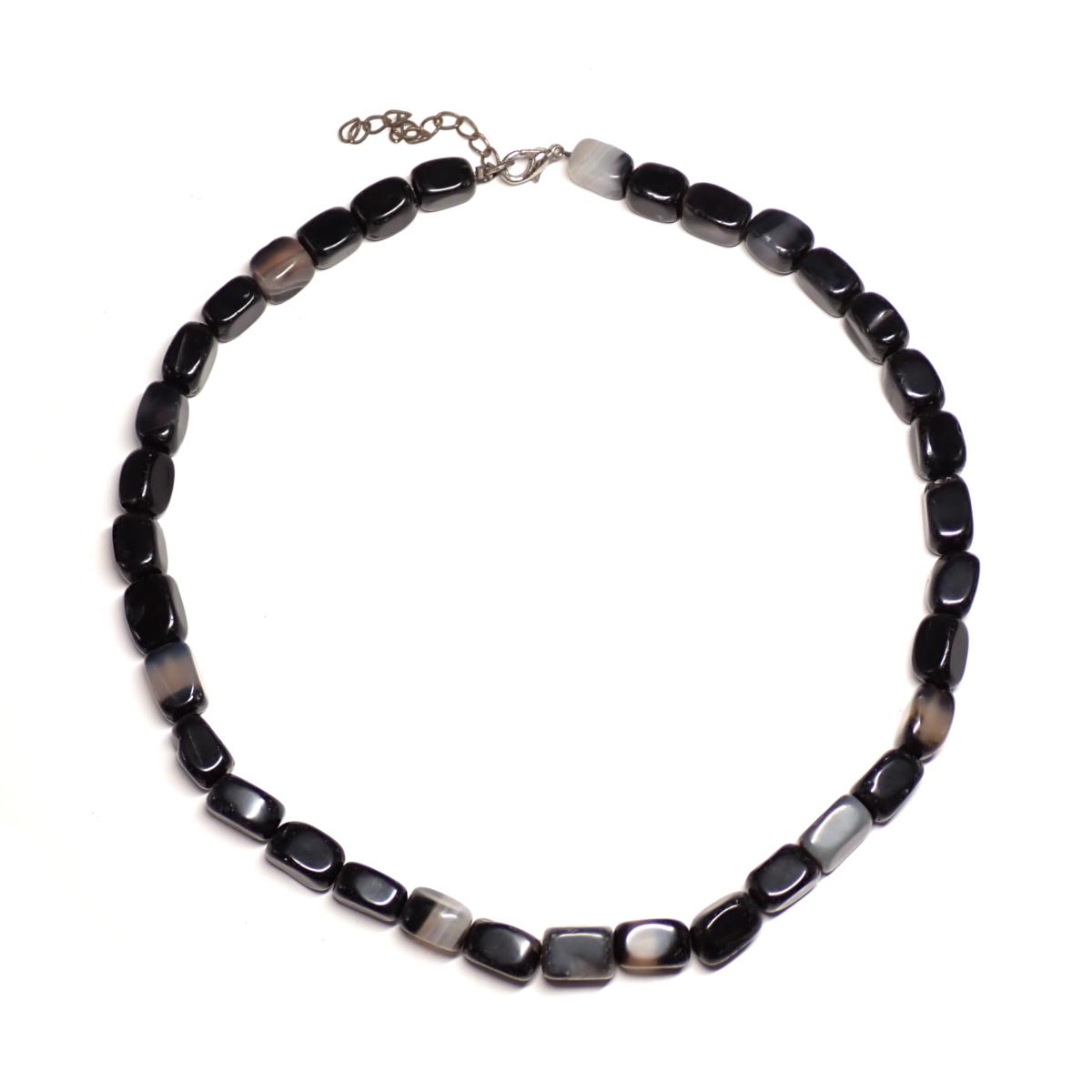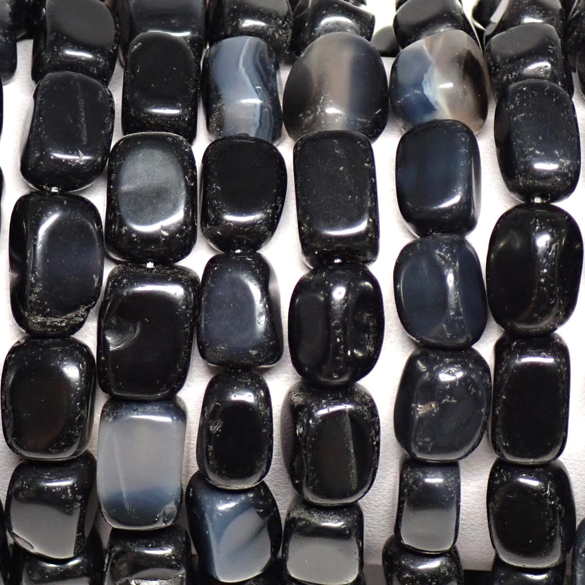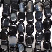L'onyx est une variété de calcédoine (groupe du quartz, Si O2) à bandes parallèles rectilignes, noires et blanches. C'est la partie noire que l'on appelle communément onyx noir.  Pierre d'enracinement à la Terre. Elle nous donne une grande stabilité. Traditionnellement, l'onyx noir est une pierre de protection contre les énergies négatives.