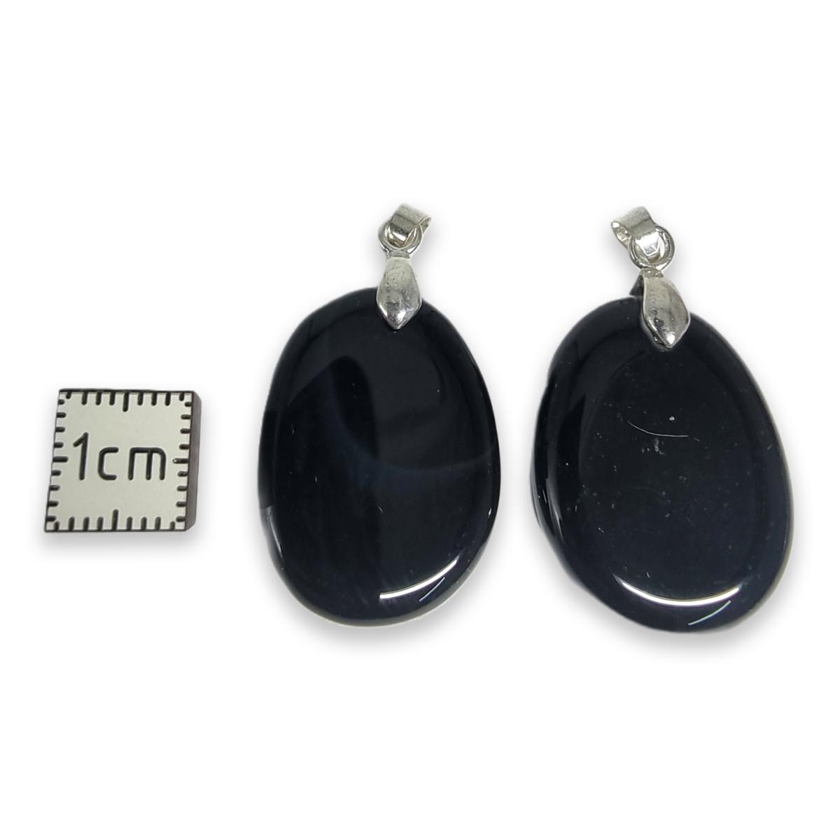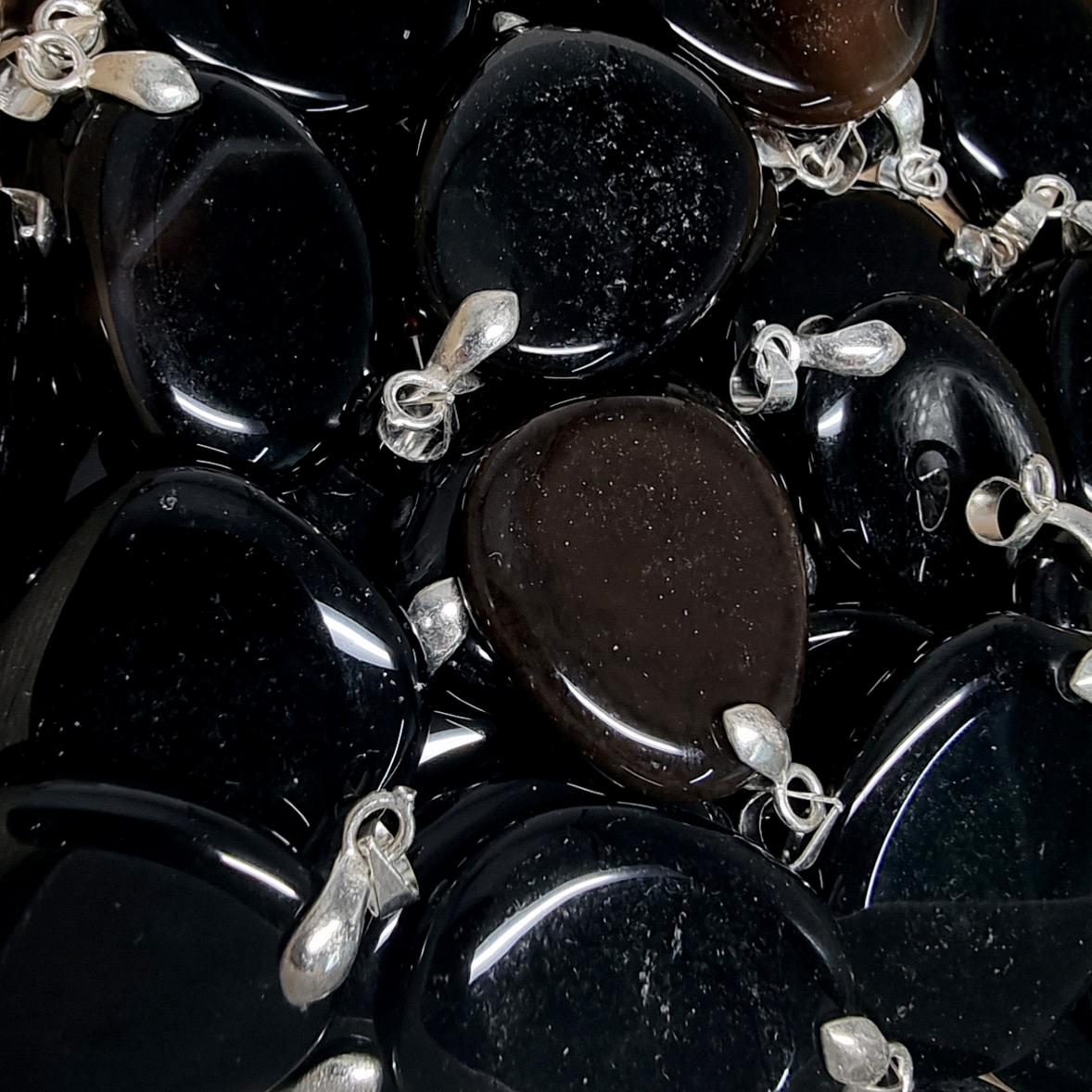 L'onyx est une variété de calcédoine (groupe du quartz, Si O2) à bandes parallèles rectilignes, noires et blanches. C'est la partie noire que l'on appelle communément onyx noir.  Pierre d'enracinement à la Terre. Elle nous donne une grande stabilité. Traditionnellement, l'onyx noir est une pierre de protection contre les énergies négatives.