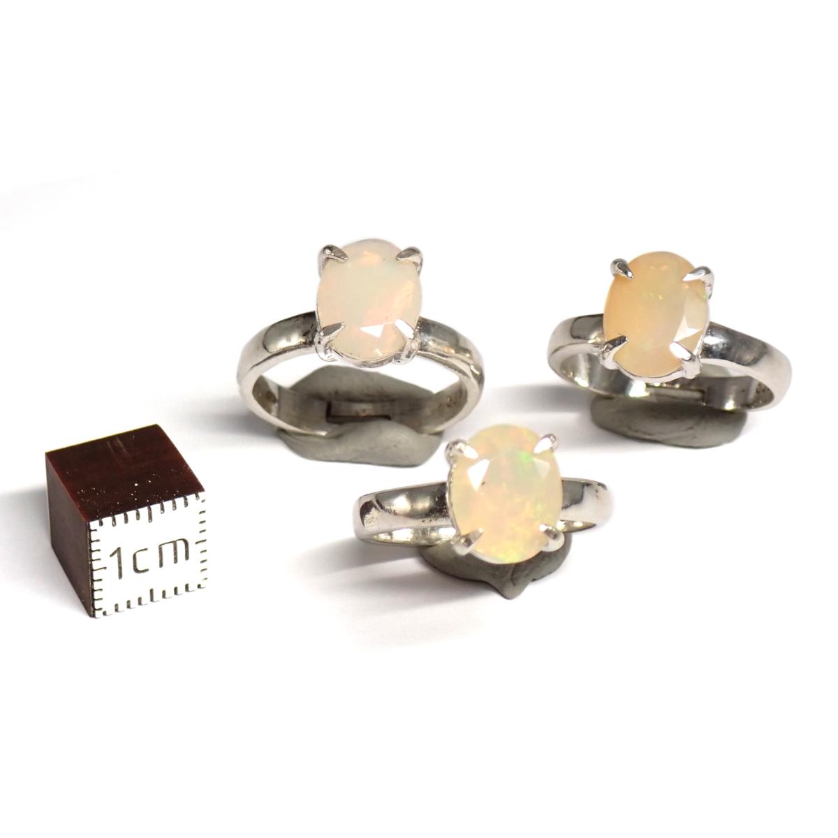 Lot de 3 bagues Réglable en Opale d'Éthiopie avec Monture Argent 15760
