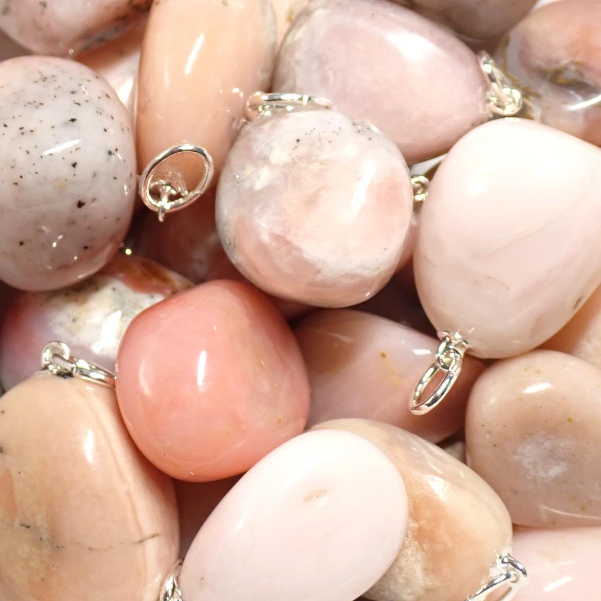 Opale Rose Pendentif pierre roulée par 10 pièces