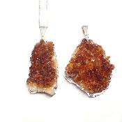 | Citrine chauffée Amas Pendentif pierre Brute Electroplated par 3 pièces