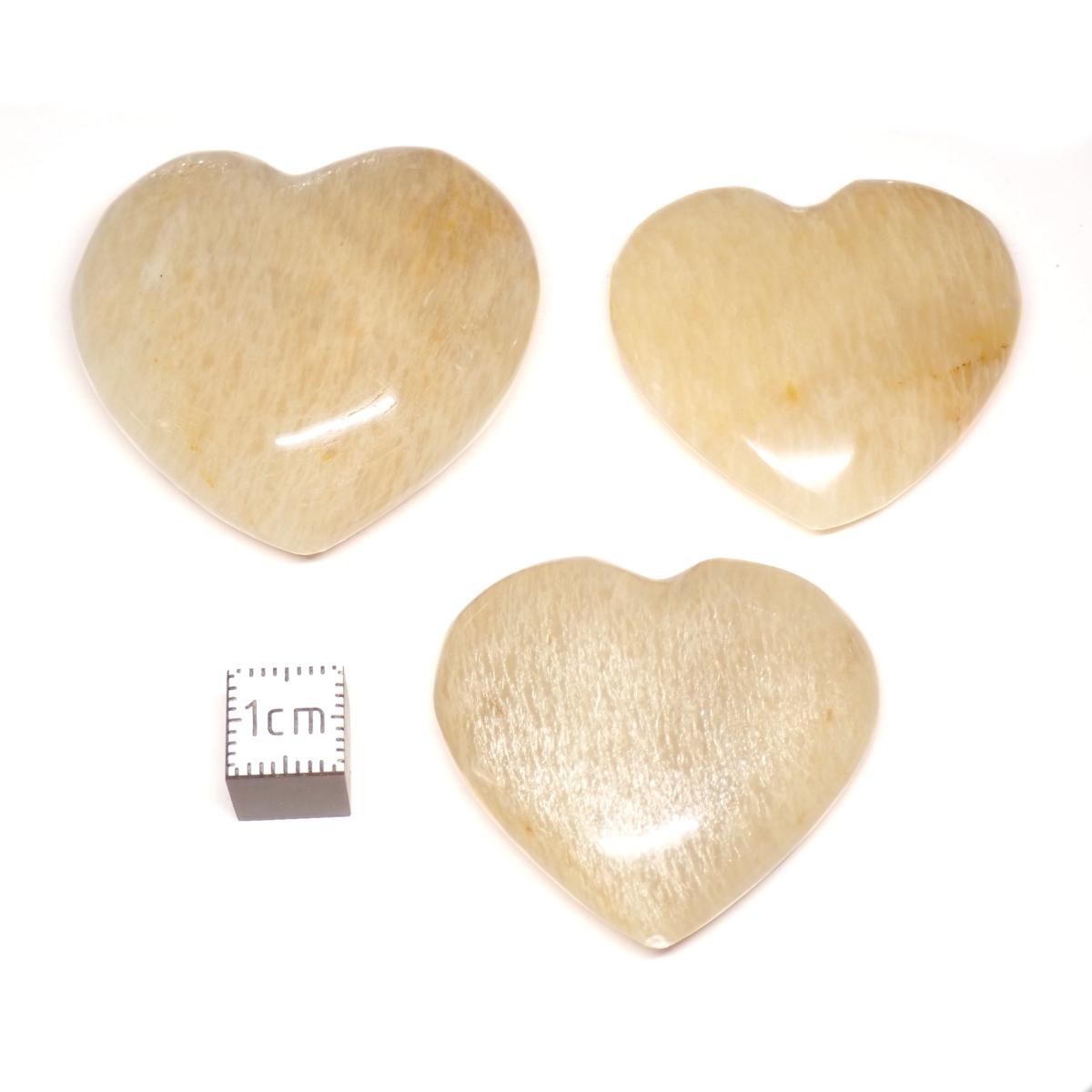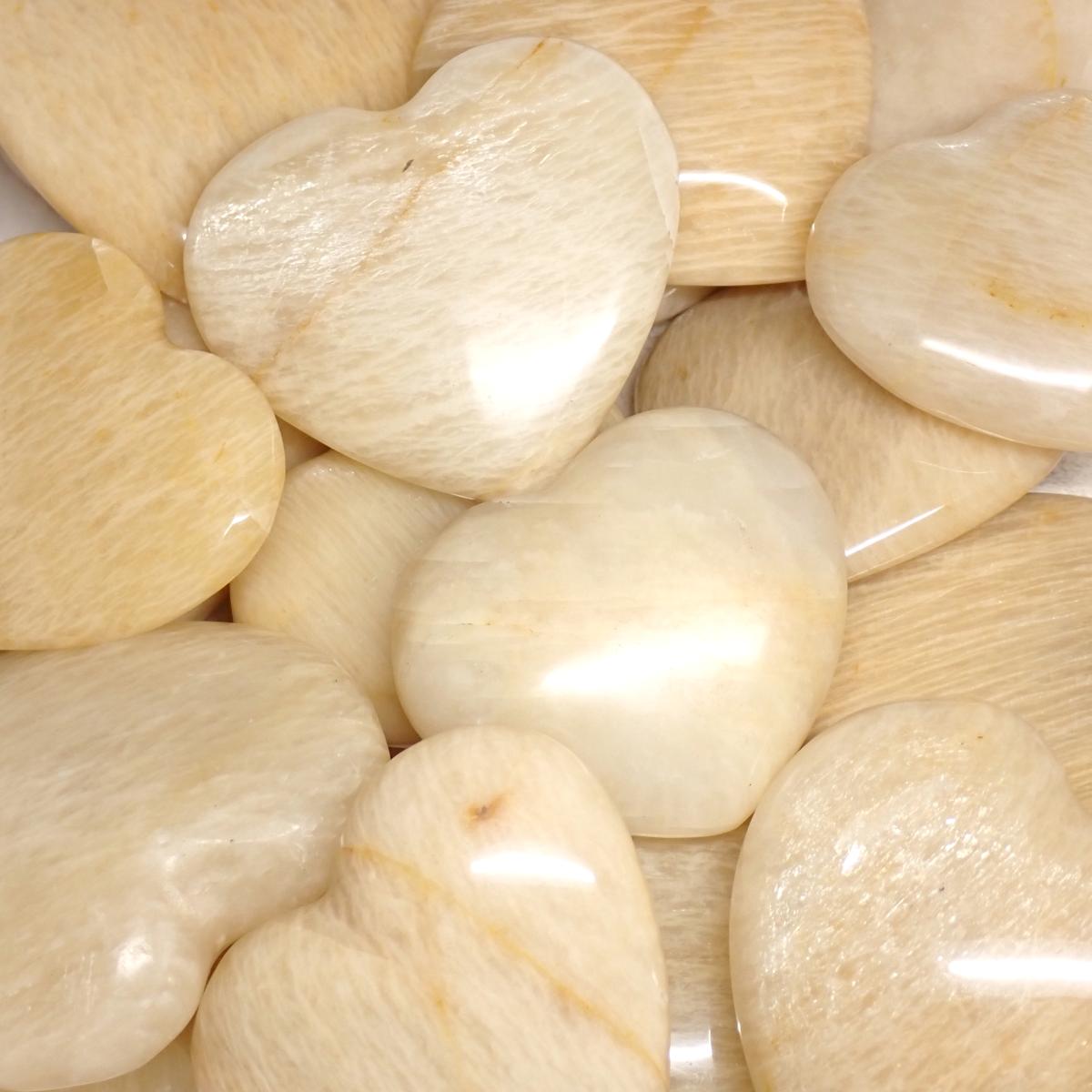 Coeurs en Pierre de Lune Beige par Sachet de 250 g (contient entre 8 et 10 pièces) (Taille des coeurs entre 25 mm et 45 mm de large)