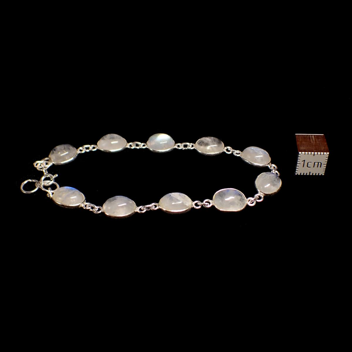 Lot de 3 Bracelets Ovale en Pierre de Lune Bleutée avec Monture Argent