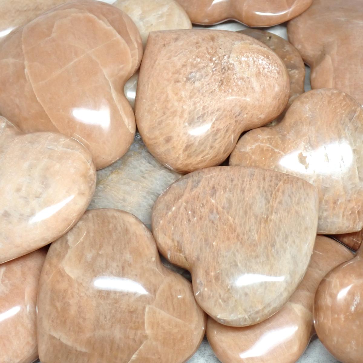 Coeurs en Pierre de Lune Beige par Sachet de 250 g (contient entre 8 et 10 pièces) (Taille des coeurs entre 35 mm et 40 mm de large)