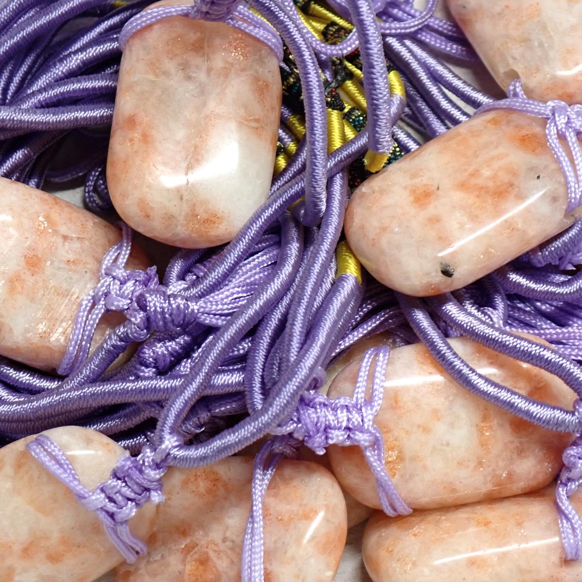 Pierre de Soleil avec cordon - pendentif pierre roulé (Lot de 10 pièces)