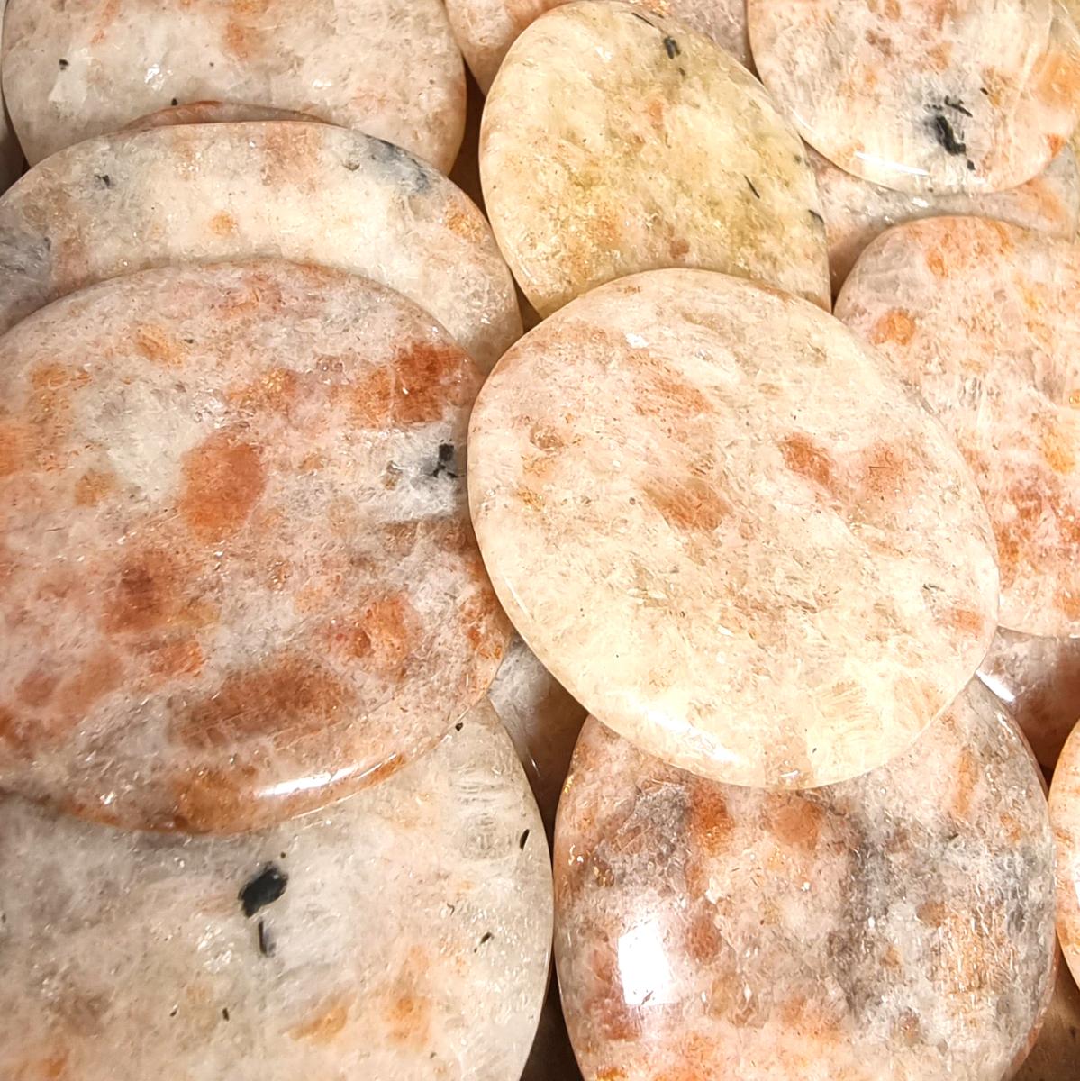 Aluminosilicate de sodium et de calcium. C'est la variété gemme de l'oligoclase, un silicate de la famille des feldspaths alcalins. Pierre orange, ses reflets métalliques sont dus à des inclusions de goethite et d'hématite. Comme la pierre de lune bleutée, elle connecte à l'énergie originelle des hommes. Pour la moitié des hommes elle règles tous les problèmes en apportant ce qui manque pour être heureux et confiant. La pierre de soleil réchauffe, rassure et dynamise. Comme la Topaze Impériale et la Cornaline, elle rayonne la joie et l'optimisme.