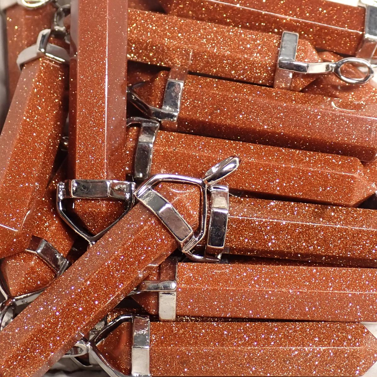 Pierre de Soleil Synthétique - Pendentif Biterminée (Lot de 5 pièces)