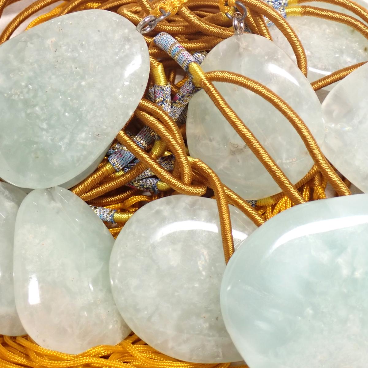 Prehnite avec cordon - pendentif pierre plate (Lot de 10 pièces)