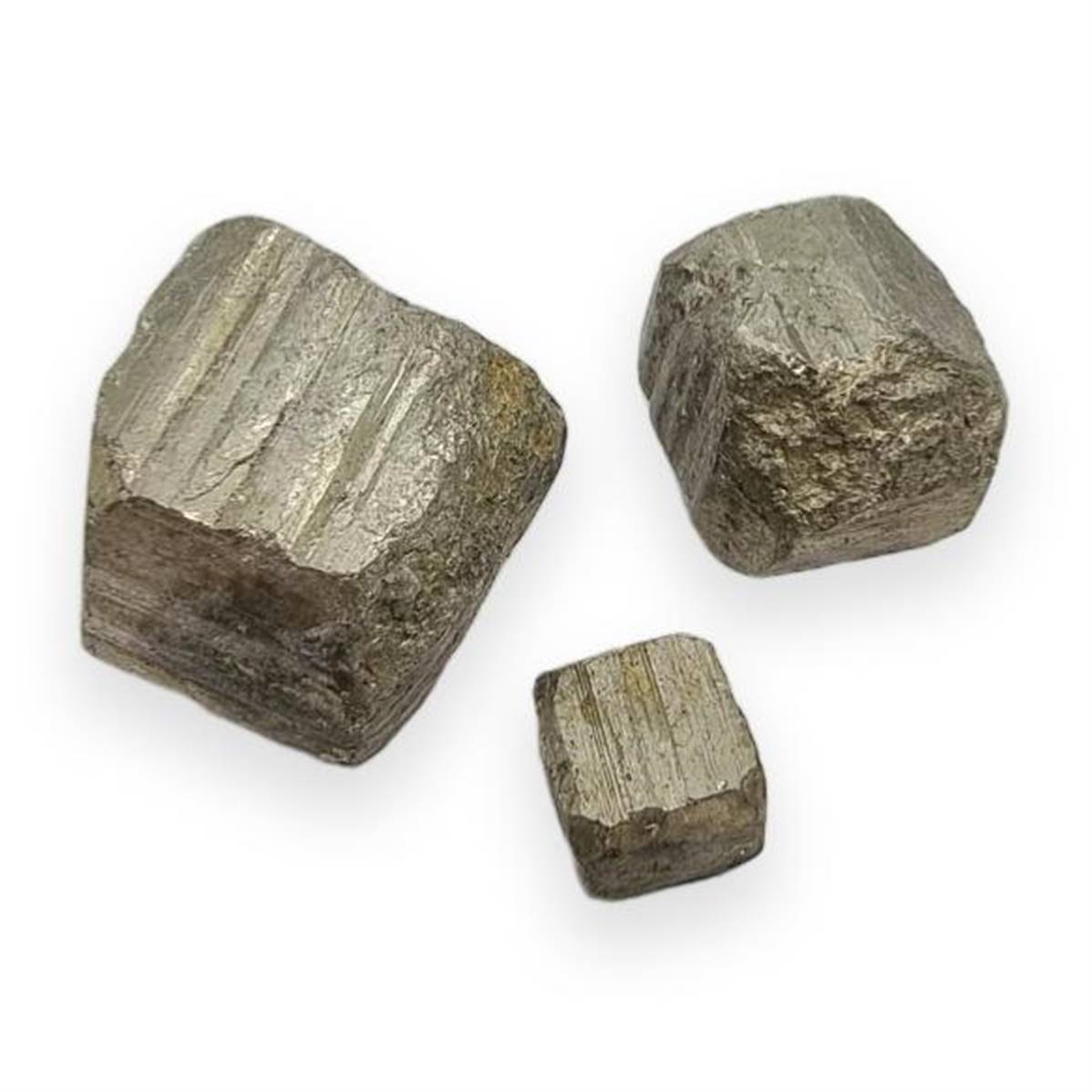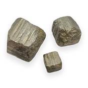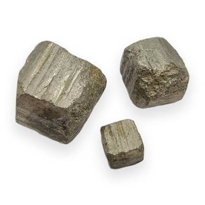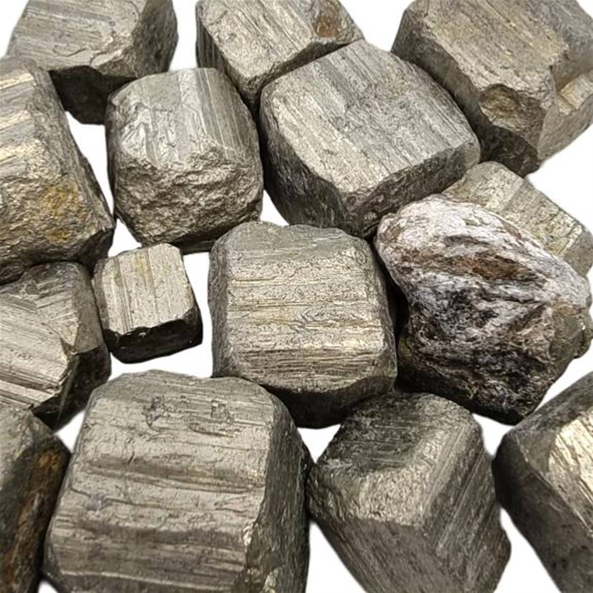 Sulfure de fer (Fe S2). La pyrite est un outil hors pair pour rétablir les polarités du corps physique. Elle est associée à la restructuration du mental. Elle stimulerait les facultés intellectuelles, la pensée rationnelle. Concerne l'organisation, l'ordre, la structure, les chiffres. Pierre des bâtisseurs et des architectes.
