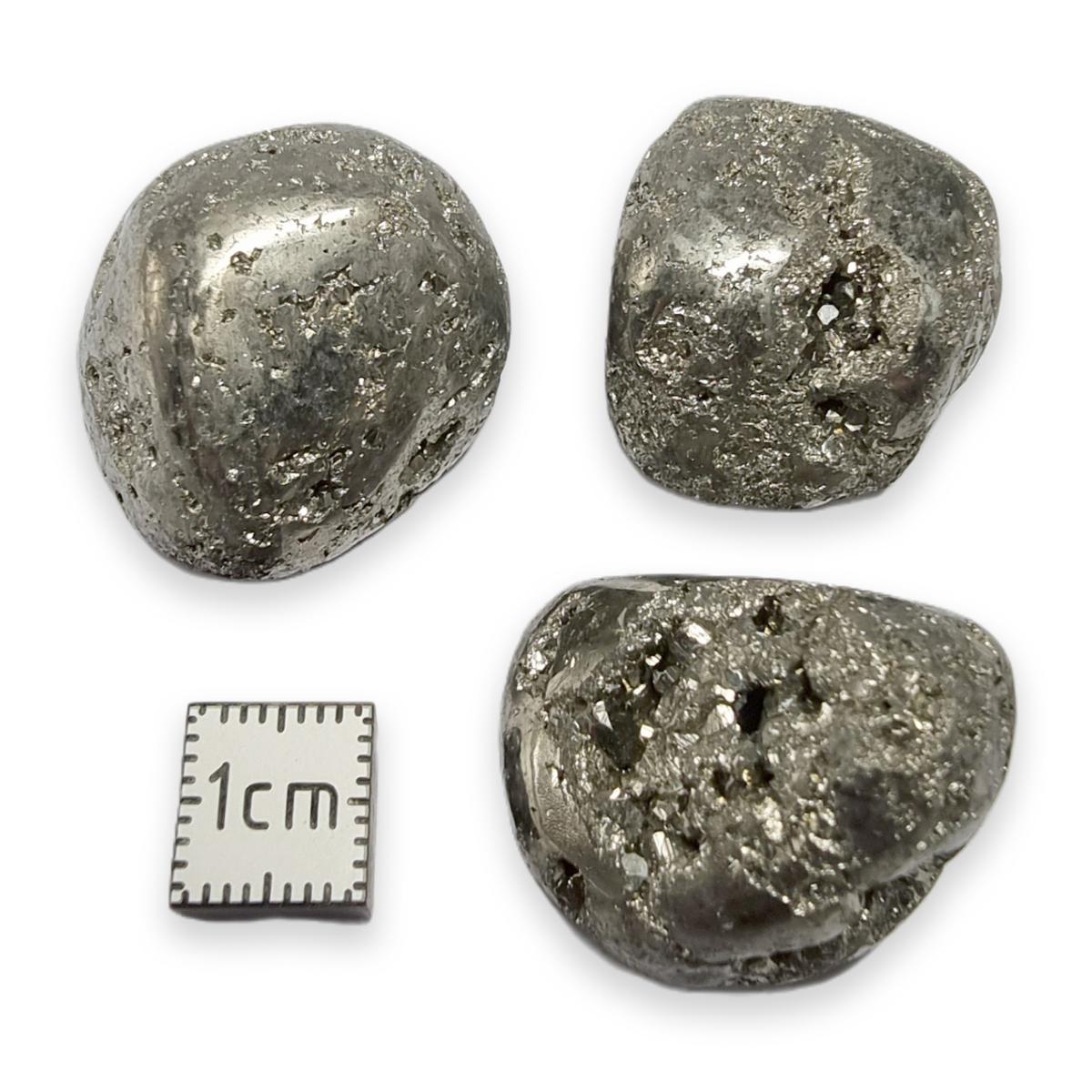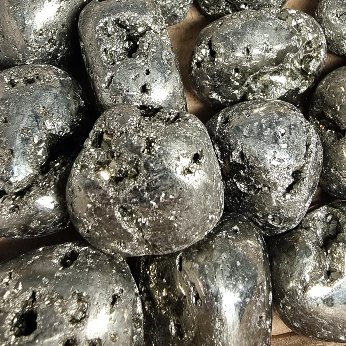 Sulfure de fer (Fe S2). La pyrite est un outil hors pair pour rétablir les polarités du corps physique. Elle est associée à la restructuration du mental. Elle stimulerait les facultés intellectuelles, la pensée rationnelle. Concerne l'organisation, l'ordre, la structure, les chiffres. Pierre des bâtisseurs et des architectes.
