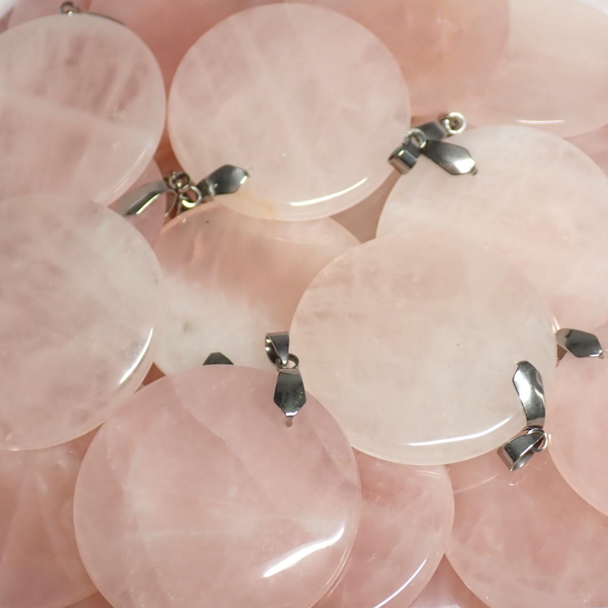 Quartz Rose - Pendentif Cercle (Lot de 10 pièces)