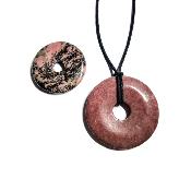 Rhodonite du Brésil avec cordon pendentif pierre roulé par 10 pièces