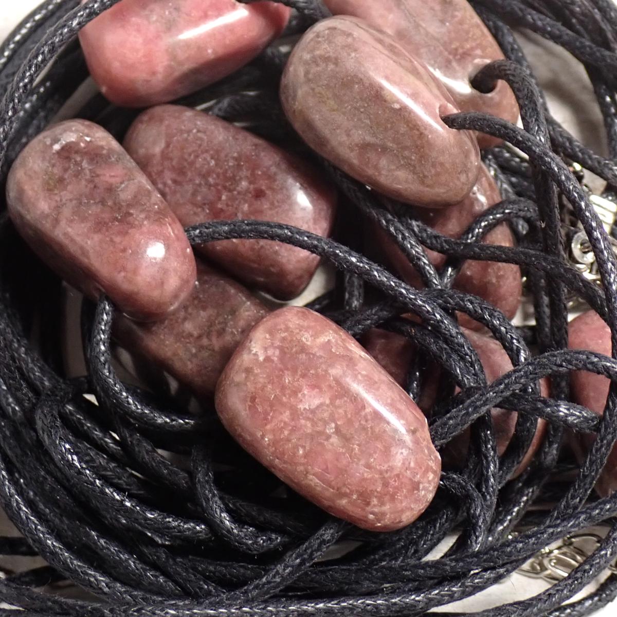 Rhodonite du Brésil avec cordon pendentif pierre roulé par 10 pièces