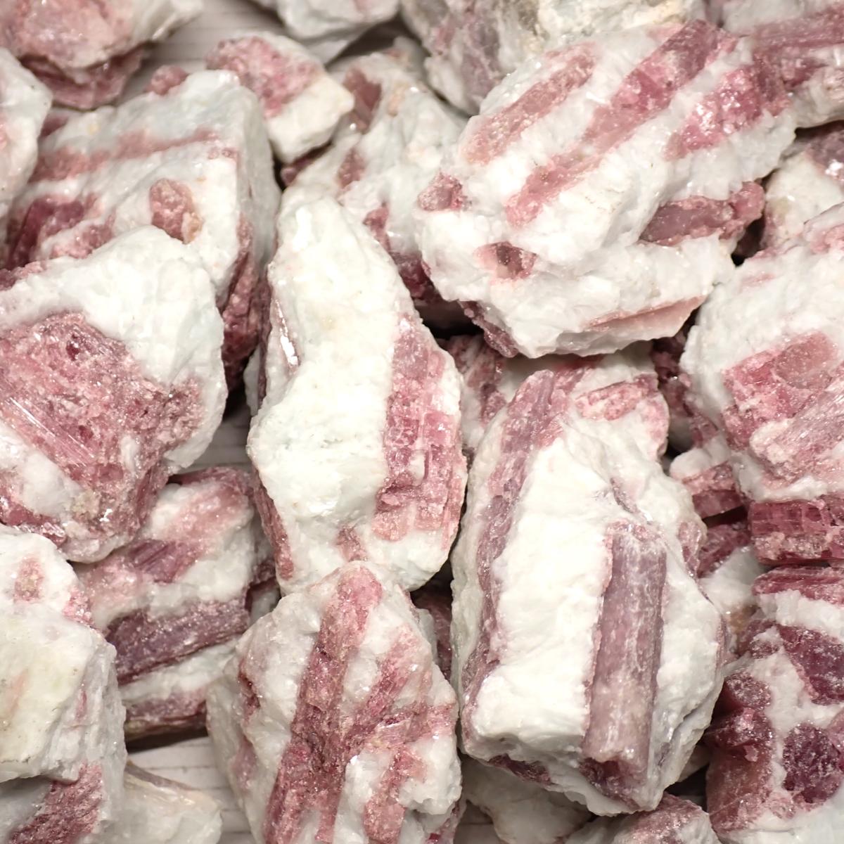 Variété rose d'elbaite (borosilicate riche en sodium, lithium et aluminium). Elle permet d'aligner tous nos chakras et de les réactiver grâce à sa très haute vibration. Elle favorise la montée de Kundalini. La rubellite est source de vitalité et de sérénité. La rubellite aide à résoudre les conflits avec la mère.