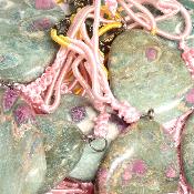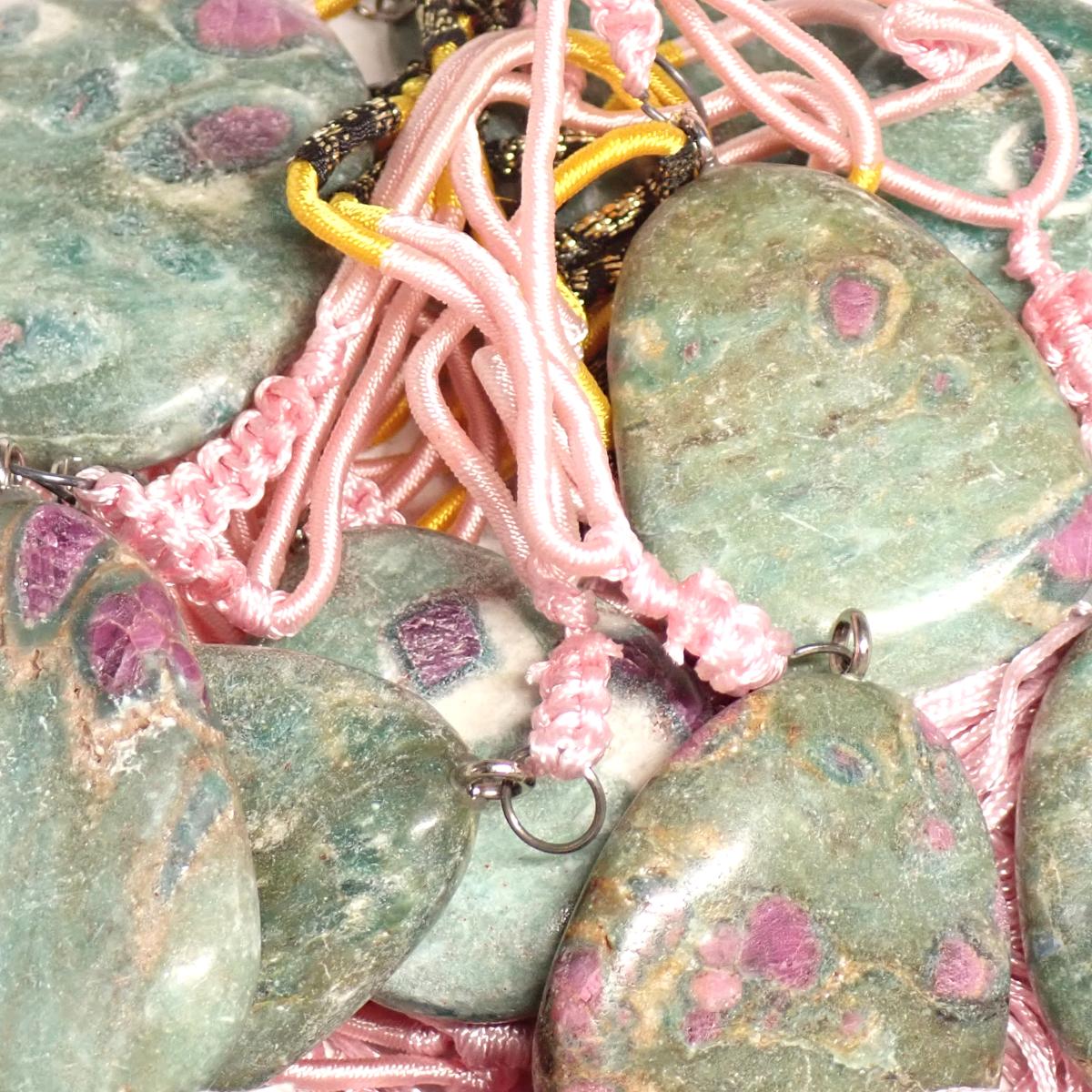 • Rubis sur Fuchsite avec cordon - pendentif pierre plate (Lot de 10 pièces)
