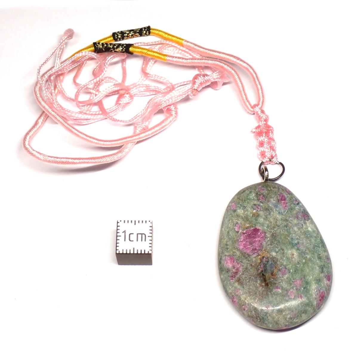Rubis sur Fuchsite avec cordon - pendentif pierre plate (Lot de 10 pièces)