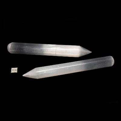 Gypse translucide avec des nervures. Du groupe des sulfates (Ca SO4 - 2H2O). Pierre calmante, qui nous apporte bien être et sérénité. Elle éclaircit les idées. Bon support de méditation apporte une sensation douce de purification, de pureté du profond de notre corps jusqu'à la peau. Attention, elle est soluble dans l'eau.