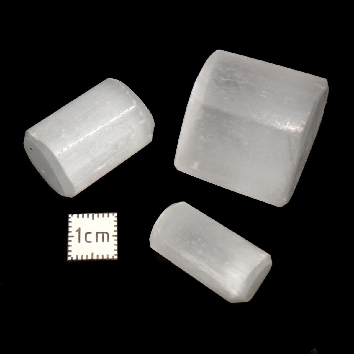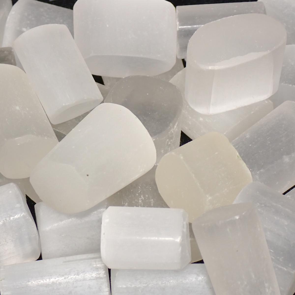 Gypse translucide avec des nervures. Du groupe des sulfates (Ca SO4 - 2H2O). Pierre calmante, qui nous apporte bien être et sérénité. Elle éclaircit les idées. Bon support de méditation grâce à sa structure de fibre optique, pierre de pureté et de douceur en massage sur la peau. Attention, elle est soluble dans l'eau.