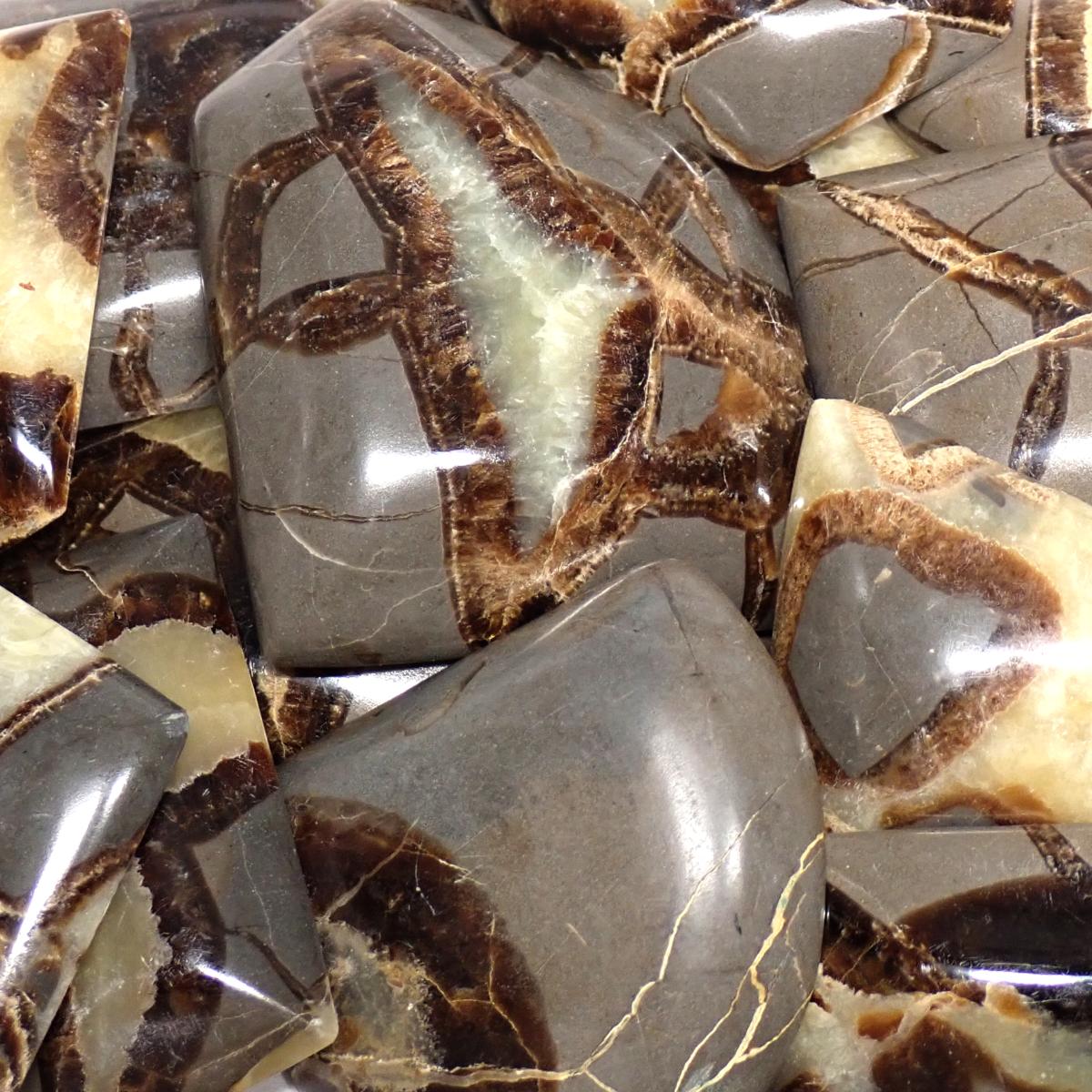 Concrétion formée dans les marnes (argile), caractérisée par des fissures radiales (des "sept"), qui par la suite se sont remplies de cristaux. La variété brune contient de la calcédoine et la variété orange contient de la calcite. La septaria est une pierre puissamment magnétique, remplie d'énergie. L'énergie de ce minéral nous porte vers le concret, vers la réalisation des projets.