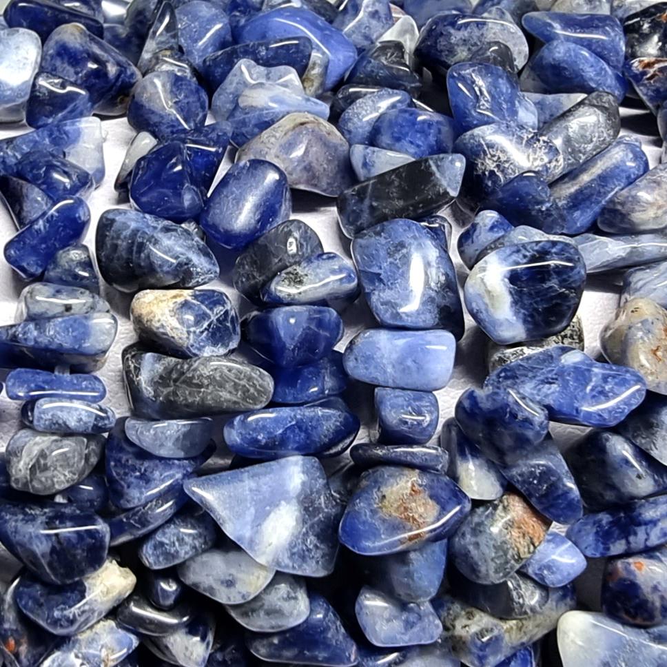 Aluminosilicate de sodium et de chlore. Tout comme le Lapis Lazuli, posée sur le chakra frontal, la sodalite est un bon stimulant du 3e oeil, un bon stimulant des fonctions cérébrales, de l'intelligence intuitive. Elle favorise la vision intérieure, clarifie le mental. Lorsque le mental est purifié et pacifié, nous accédons à une meilleure compréhension du monde et de nous mêmes. En méditation, la sodalite nous aide ainsi à nous détacher de vieux schémas mentaux. La sodalite apaisante de transformation en association avec l'aventurine verte et le jaspe mokaite.