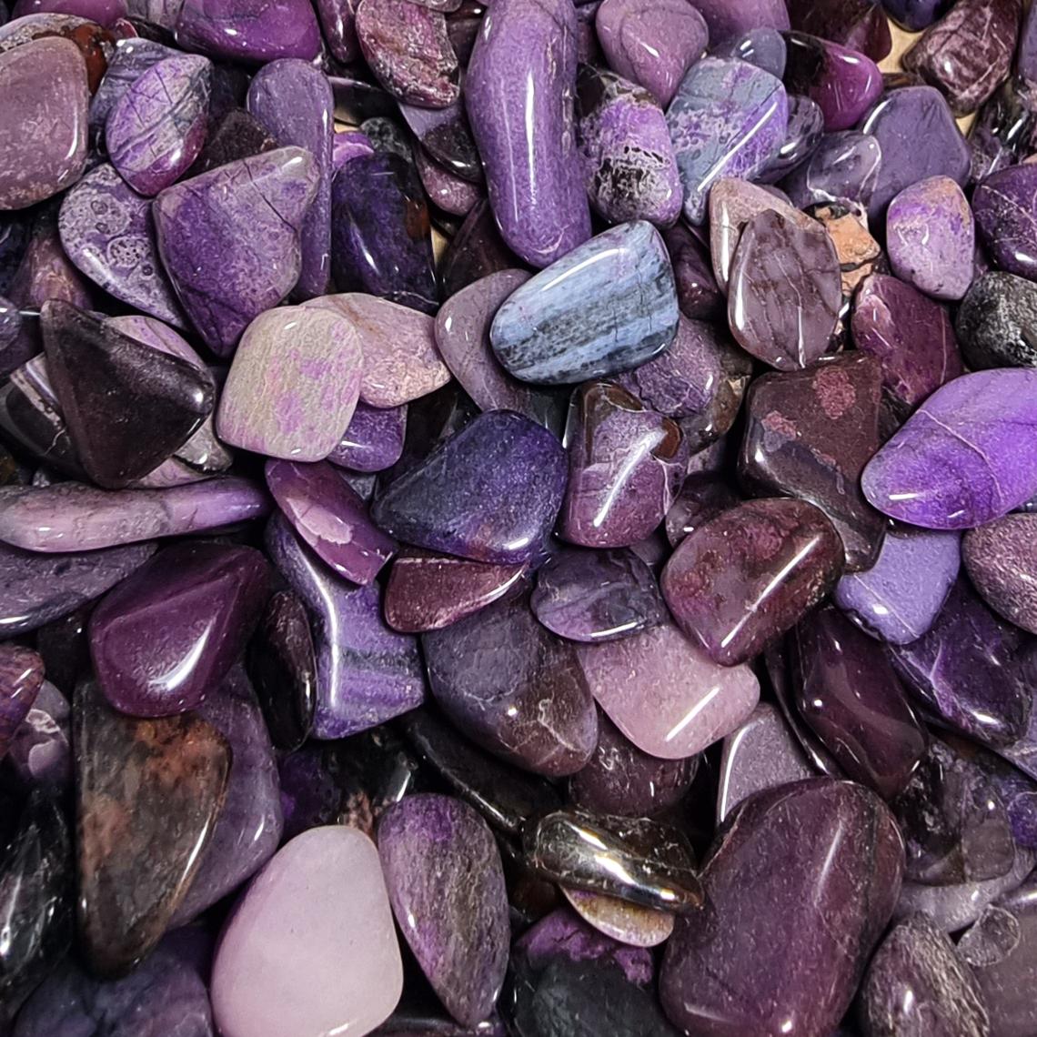 Elle contient parfois de l'hématite et sa force spirituelle agit dans le sang et les émotions ; on l'appelle souvent pierre du Nouvel Age, celle qui nous aide à passer sans encombre à l'ère du Verseau (cequi nous nettoie et nous essore en ce moment ), elle nous aidera à élargir notre esprit, à le rendre plus créateur et plus tourné vers la nature et le spirituel. La sugilite représente l'amour spirituel et la sagesse. Associée au chakra coronal, elle nous rappelle notre véritable chemin de vie.