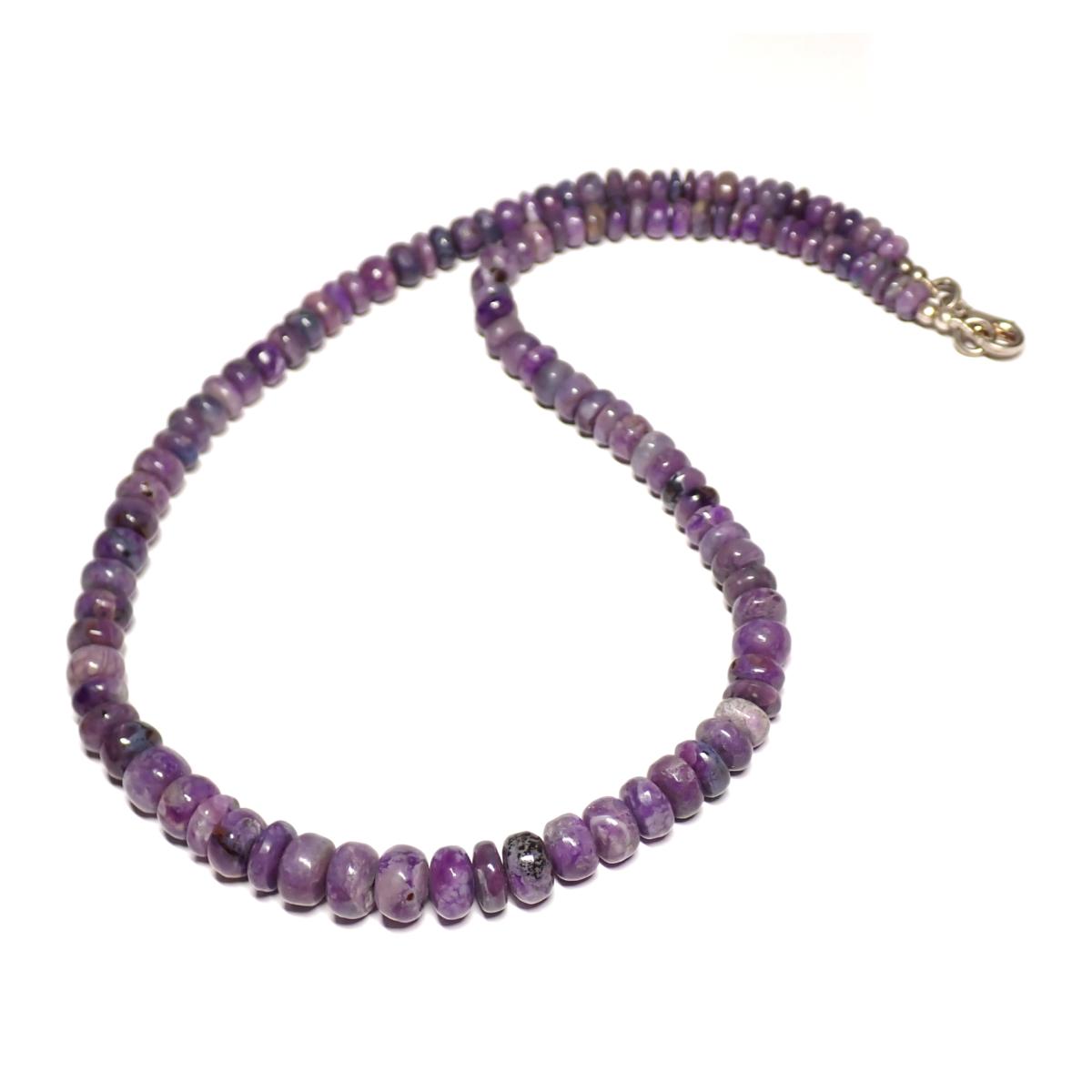 La sugilite violet clair, conserve les mêmes énergies que la sugilite violette, mais elle augmente particulièrement l’énergie d’amour dans le chakra du cœur. Cette variété violet clair fait descendre l’énergie du ciel, l’énergie spirituelle en nous et la fait sortir dans le chakra du cœur. Utile pour les personnes qui manque de confiance en soi à plus s’affirmer, utile contre la dépression, pour arrêter de trop penser et pour sentir fortement l’amour remplir et sortir du cœur. Pour faire circuler l’énergie dans tous les chakras et pour qu’en retour les chakras apportent leurs énergies aux organes correspondants. Comme pour la sugilite violette, cette sugilite violet clair fait circuler l’amour au cœur de notre corps, dans nos cellules. A terme, et avec plus ou moins de temps, la sugilite nous apportera la guérison, cela varie en fonction de nos résistances et de l’intensité de la maladie. Si la sugilite, avec son énergie spirituelle d’amour, a décidé qu’il était temps de partir au ciel, la sugilite aidera la personne dans ce voyage.
