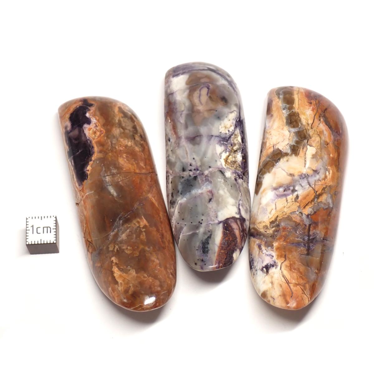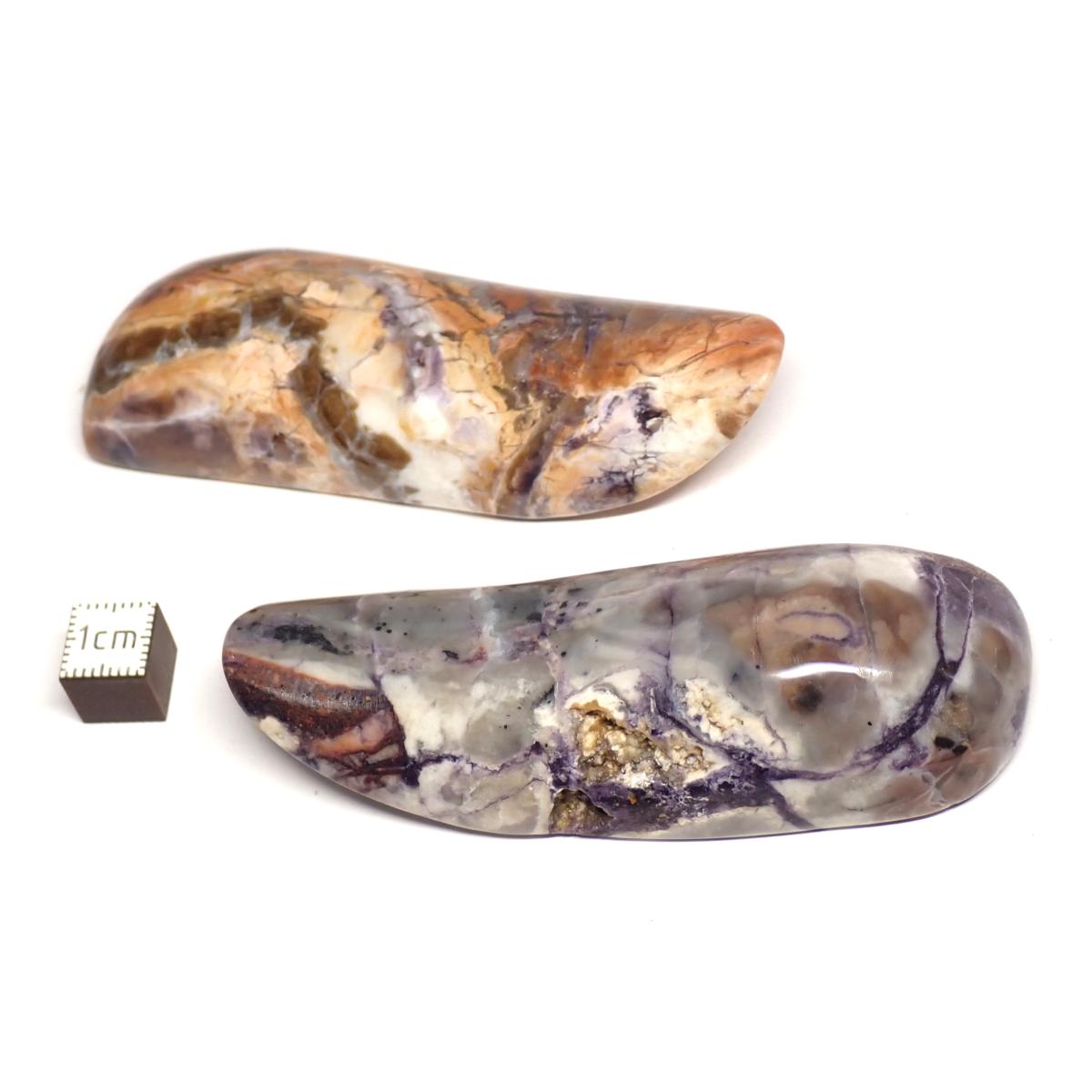 Variété de BERTRANDITE, silicate de béryllium produit par l'altération (pseudo morphisme) du béryl. Commercialement, cette pierre rare d'une grande beauté est connue sous les noms d'Opalite violette, d'Opale Ice Cream et de Passion Violette. Elle provient de la mine fermée de béryllium Brush Wellman, dans l'état de Utah, Etats-Unis. C'est une pierre apaisante et améliorant la circulation de nos énergies. De couleur violette et blanche c'est une bonne pierre de protection spirituelle pour rester dans la paix.